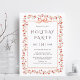 Cette élégante invitation de fête de vacances présente un cadre de baies rouge aquarelle avec un arc rouge charmant et une typographie élégante.