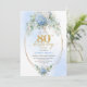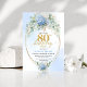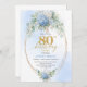 Invitation Refined Chic Dusty Blue Floral Gold 80th Birthday