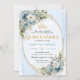 Ideal for classic, modern, garden, or elegant Quinceañera themes, this invitation combines delicate blue hues with warm gold details to achieve a look that feels both sophisticated and youthful. The greenery and eucalyptus bring freshness and balance, while the gold accents add just the right amount of sparkle for a meaningful 15th birthday celebration. Whether you are planning a formal Quinceañera, a traditional fiesta, or an intimate family gathering, this invitation sets a beautiful and memorable tone.