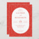 This elegant wedding invitation features a sophisticated red and white color palette, with intricate floral patterns creating an inviting backdrop. The central oval frame highlights the text in a classic serif font, adding a touch of timeless charm to the design. Perfect for a romantic and refined celebration, this invitation exudes warmth and grace, making it ideal for couples who desire a traditional yet stylish event. With customizable details, it seamlessly fits into any special occasion, ensuring your guests feel welcomed and celebrated.