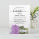 Cette belle invitation à la douche nuptiale présente une photo d'un seul rose lilas à longue tige couleur pourpre allongé sur son côté, se reflétant dans un bassin d'eau avec vagues et ondulations. L'élégant titre de calligraphie script prête classe et style. Inclut des informations sur le registre des douches et des cadeaux. Une façon parfaite de célébrer la mariée à être.