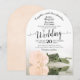 Cette belle faire-part de mariage présente une photo d'un rose de pêche à long tige blush pâle et à la couleur pâle posé sur son côté réfléchissant dans un bassin d'eau avec des ondulations et des vagues. La typographie présente une élégante calligraphie de script et le libellé est formel, rendant cette invitation à la fois moderne et classique. Le dos est d'une belle couleur orange pâle marbré. Magnifique façon d'invitation vos amis et votre famille à partager dans votre journée spéciale.