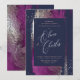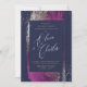 Collection Shine de PixDezines. Félicitations hivernales de coups de pinceau aquarelle dans la liqueur de Cassis avec une touche de métal argenté sur fond bleu marine à faire soi-même pour invitation de mariage. Notre conception dynamique vous permet de modifier tous les éléments. Pour utiliser cette calligraphie, envoyez une demande avec vos noms, des frais minimes s'appliquent.