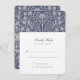 Cette carte de faire-part de mariage RSVP est un chef-d'oeuvre de l'élégance classique et du charme royal. Sur fond de bleu marine, une symphonie de botaniques crème et de fleurs dansent avec grâce, créant un motif orné d'inspiration victorienne. Deux inséparables majestueux, chacun avec une lettre monogramme, sont des symboles d'amour et d'engagement au centre de cette scène de jardin luxuriante. Les détails somptueux du design rappellent les tapisseries historiques et les invités invitations pour participer à la grandeur de votre prochaine célébration. Le revers de la carte conserve le thème de la simplicité raffinée, offrant aux clients un format de réponse rapide, dans une police sophistiquée qui fait écho aux racines classiques du design.