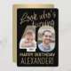 Regardez qui a 40 ans ! Famille Invitation et amis à une élégante fête du 40e anniversaire pour lui ou elle avec 2 invitations personnalisées de fête photo. Les images et le libellé de ce modèle sont simples à personnaliser. (CONSEIL EN MATIÈRE DE PLACEMENT D'IMAGE : Une façon simple de positionner une photo exactement comment vous voulez est de la rogner avant de télécharger sur le site Zazzle. Si vous avez besoin d'aide supplémentaire, envoyez-moi un message :) Le design noir et or comprend deux images de votre choix, la calligraphie de script moderne, et la typographie art déco vintage design. Veuillez noter que l'or est imprimé en couleur et non en métal. Le design unique et neutre est également adapté à un homme ou à une femme. Joyeux quarantième anniversaire !