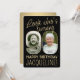 Regardez qui a 90 ans ! Famille Invitation et amis à une élégante célébration du 90e anniversaire pour lui ou elle avec 2 invitations personnalisées de fête photo. Les images et le libellé de ce modèle sont simples à personnaliser. (CONSEIL EN MATIÈRE DE PLACEMENT D'IMAGE : Une façon simple de positionner une photo exactement comment vous voulez est de la rogner avant de télécharger sur le site Zazzle. Si vous avez besoin d'aide supplémentaire, envoyez-moi un message :) Le design noir et or comprend deux images de votre choix, la calligraphie de script moderne, et la typographie art déco vintage design. Veuillez noter que l'or est imprimé en couleur et non en métal. Le design unique et neutre est également adapté à un homme ou à une femme. Joyeux Ninetieth Anniversaire !