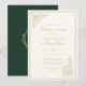 Featuring delicate vintage florals, ornate framing, refined script typography, and a classic monogram crest on a rich dark green back, this invitation captures the charm of an English countryside garden party. Designed for romantic, literary, and period-inspired weddings, it evokes the grace of historic manor estates and candlelit celebrations.