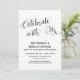 Cette carte simple et élégante a été conçue pour inviter vos amis et votre famille à votre réception de mariage ou à votre fête qui se tiendra à une date ultérieure à votre mariage. En utilisant une police de caractères moderne et tourbillonnante, j'ai créé une superposition graphique de typographie qui indique "Célébrez avec nous". Cette image a été associée à une police sans empattements en majuscules pour représenter vos informations personnelles. Utilisez les champs de modèle fournis pour mettre à jour le design. Si vous souhaitez personnaliser davantage, déplacer des détails ailleurs, modifier les polices ou les tailles, cliquez simplement sur le lien fourni et modifiez le design comme vous le souhaitez. J'ai ajouté toutes les couches séparément et elles sont déverrouillées pour vous donner un contrôle total sur la conception.