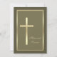 Les invitations à la cérémonie commémorative sont des invitations très spéciales utilisées pour inviter les invités à une cérémonie commémorative. Cette invitation à la cérémonie commémorative serait parfaite pour une cérémonie commémorative basée sur la foi, car elle présente une croix dorée sur le devant sur fond olive avec les mots Cérémonie commémorative à côté de la croix. Le verso de l'invitation est réservé aux détails de votre invitation à la cérémonie commémorative. Une façon très charmante d'honorer votre proche avec une cérémonie commémorative. Copyright sympathiemerci