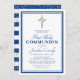 Invitation Religieux Garçon Argent Bleu Première Sainte Commu
