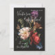Élégante composition florale botanique inspirée de Rembrandt, maître hollandais, sur fond sombre. Celle-ci est pour un Save the Date de mariage, mais vous pouvez modifier le texte pour l'adapter à vos besoins.