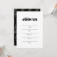 Invitez vos invités avec cette élégante invitation noire et blanche. Modèle facile à utiliser pour écrire vos invitations à la main. Utilisez pour toute occasion ou événement tel que les mariages, les anniversaires, les anniversaires de naissance et les réunions de famille. Invitation polyvalente qui facilitera la planification de votre célébration. Personnalisez davantage ce design en sélectionnant le lien "personnaliser davantage" si vous le souhaitez, mais pourquoi ne pas le garder simple.