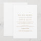 Cette carte d'invitation de renouvellement de voeux Nous Refaire avec typographie or chic est parfaite pour une cérémonie et une célébration de renouvellement de voeux moderne. Le design simple présente une typographie classique minimaliste or et blanc avec une ambiance rustique bohème. Personnalisable dans n'importe quelle couleur. Gardez le design minimal et élégant, tel quel, ou personnalisez-le en ajoutant vos propres graphiques et illustrations.