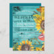 Campagne rustique, bois turquoise et tournesols invitations de renouvellement de vœux d'anniversaire - Fond de planches en bois de grange teintées de turquoise, altérées et en détresse. Bordé sur le côté et en bas de fleurs de tournesol à l'aquarelle rustique, de quenouilles et de feuilles de tons terreux jaunes, bruns, verts et une touche de rouge. Lit "Nous faisons toujours" dans une écriture assortie de style western de couleur sarcelle avec "Renouvellement de vœux" en dessous et l'année d'anniversaire au-dessus en lettrage incurvé. Les détails de la fête d'anniversaire, y compris les informations de RSVP, sont en dessous. Le dos a un fond sarcelle uni assorti, qui peut être changé en n'importe quelle nuance. Remarque : Toutes les images sont imprimées. Utilisez le bouton Personnaliser pour changer quoi que ce soit - styles de police, tailles, couleurs ou placement. Invitations champêtres élég