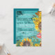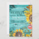 Campagne rustique, bois turquoise et tournesols invitations de renouvellement de vœux d'anniversaire - Fond en planches de grange en bois turquoise délavé, en détresse. Bordé sur le côté et en bas de fleurs de tournesol à l'aquarelle rustique, de massettes et de feuilles dans des jaunes terreux, des bruns, des verts et une touche de rouge. Porte la mention 'We Still Do' dans une écriture correspondante de style occidental de couleur sarcelle avec 'Vow Renewal' en dessous et l'année d'anniversaire au-dessus en lettres courbes. Les détails de la fête d'anniversaire, y compris les informations de RSVP, sont ci-dessous. Le dos a un fond sarcelle uni correspondant, qui peut être changé en n'importe quelle nuance. Remarque : Toutes les images sont imprimées. Utilisez le bouton Personnaliser pour modifier quoi que ce soit - styles de police, tailles, couleurs ou placement. Invitations champêtres élégantes pour l'été ou l'automne