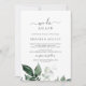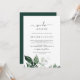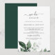 Cette carte d'invitation de renouvellement de vœux Nous le refaisons dans la verdure émeraude est parfaite pour une cérémonie et une célébration de renouvellement de vœux bohème. Le design élégant mais rustique présente des feuilles d'eucalyptus et de couleur vert foncé aquarellées avec une ambiance boisée bohème moderne.