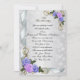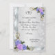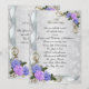 Invitation élégante pour une fête d'anniversaire de 25 ans avec de belles roses et rubans lavande et bleus. Composition d'image et d'illustration en design personnalisé pour une fête d'anniversaire de mariage élégante et formelle de 25 ans sur le devant. Personnalisez le texte et changez la police si vous le souhaitez. Accents argentés et fleurs délicates. Composition d'image et d'illustration pour un mariage élégant et formel, modèle de fête d'anniversaire ou de fiançailles avec des accents ornementaux. Le texte est entièrement personnalisable. Ajoutez vos informations ou changez-les complètement. Il s'agit d'une carte imprimée sans embellissements séparés et ne nécessite donc pas d'affranchissement supplémentaire.