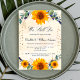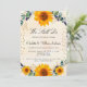 Un fond blanc et doré aquarellé orné de tournesols, de verdure d'eucalyptus et de feuilles dorées et de cœurs dorés en saupoudrage. Personnalisez et ajoutez vos noms et les détails de la fête.