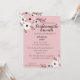 Cette image montre une invitation à un repas de demoiselles d'honneur avec un fond rose et un motif floral. L'invitation est pour une fête de thé en l'honneur d'Annabella Ford. L'événement est prévu pour le 10 juillet à deux heures de l'après-midi au restaurant The Pavillion, situé au 2385 Asteron Street, Jackson, MI.