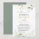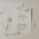 Cette invitation de repas de mariage à la calligraphie sur feuillage vert or est parfaite pour un événement rustique. Ce design artistique présente un feuillage or et vert aquarellé dessiné à la main , inspirant la beauté naturelle.
