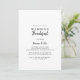 Cette invitation de repas de mariage moderne est parfaite pour un événement rustique. Le design simple et élégant présente une typographie classique et fantaisiste en noir et blanc.