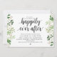 Carte d'invitation sur le thème de la verdure rustique moderne, écriture noire (avec titre de carte : pour l'amour, les rires et pour toujours heureux). Elle est parfaite pour la célébration de votre dîner de répétition de mariage, avant votre plus beau jour. Ajoutez vos détails dans une police / lettrage noir assorti.