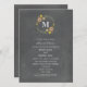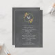 Une invitation monogramme à dîner de répétition mariage de automne illustrant une illustration de fleurs et de verdure orange et jaune disposés en cercle au sommet. Personnalisez avec votre cercle interne initial. Personnalisez le texte avec les détails de votre occasion. Le Arrière - plan est inspiré du tableau de bord.