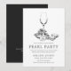 Un ensemble d'invitations de fête de perle pour votre prochaine chasse aux perles. Ces invitations présentent un texte simple de gris charbon foncé, ainsi qu'une illustration unique d'huître et de vin centrée vers le haut. Au verso de l'invitation se trouve un noir charbon doux. Tous les éléments de cette invitation sont ajustables en utilisant la fonction de personnalisation.