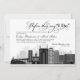 Célébrez la veille du mariage avec cette invitation de dîner de répétition saisissante mettant en vedette l'emblématique ligne d'horizon de Nashville en noir et gris dramatique. Un script de calligraphie gras commence par "Avant qu'ils ne disent 'oui'" tandis que tous les noms, dates et détails de l'événement sont entièrement modifiables. Le format de paysage horizontal donne à ce design un look distinctif et moderne. Un choix parfait pour un mariage à Nashville ou pour les couples qui aiment la ville.