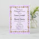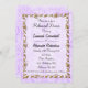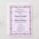 Invitation de la répétition mariage damassé violet coloré, il a une atmosphère vintage et un cadre doré décoratif autour du texte.