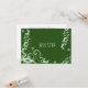 Cette carte de réponse de réception de mariage Green Flourish comporte des volutes et des fleurs blanches fantaisie sur fond vert. Recherchez les faire-part de mariage assortis et les cartons "Save The Date".