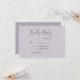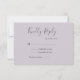 Faire-part de réponse de mariage avec une typographie élégante sur fond lilas doux avec des noms personnalisés au verso. Ce design est également disponible dans d'autres couleurs dans ma boutique.