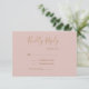 Élégante carte de réponse de mariage avec texte en or sur fond rose blush avec les noms personnalisés au dos. Ce design est également disponible dans d'autres couleurs dans ma boutique.