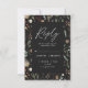 Carte de réponse R.S.V.P de mariage élégant floral noir humeur. Design botanique séché moderne tendance hiver automne noir, rouille, vert sauge, naturel et terracotte. Partie d'une suite.