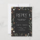 Carte de réponse R.S.V.P de mariage élégant floral noir et sombre. Magnifique design botanique séché moderne tendance hiver automne noir, rouille, vert sauge, naturel et terracotta. Fait partie d'une suite.