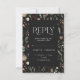 Carte de réponse R.S.V.P de mariage élégant floral sombre. Design botanique séché moderne tendance hiver automne noir, rouille, vert sauge, naturel et terracotta. Fait partie d'une suite.