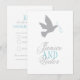 Réponse de mariage simple recto-verso avec colombe grise et deux rubans bleus. Personnalisez avec vos propres détails.