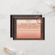 Cette invitation unique (5,25x6,25") pour une réception de mariage présente un design inspiré d'Art Déco élégant et sophistiqué dans des nuances de cuivre et de noir par l'artiste numérique Leslie Sigal Javorek. Le 'Cœur et Âme' dans ce cas fait référence à la version trademark de Jewbilee d'un Magen David (symbole de l'âme du judaïsme) composé d'un cœur et d'un triangle.