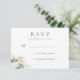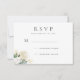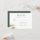 Une jolie carte de réponse/résponse de mariage, avec un petit arrangement floral aquarelle de roses et de feuilles crème, blanches et vertes, avec une pincée de paillettes fausses. Le dos est en vert sauge foncé uni. Articles assortis disponibles dans ce design.