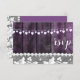 Mariage rustique avec bois, dentelle et cœurs en ficelle - carte de réponse. Conception d'Alma Wad. Dessin avant et arrière. Tous les éléments sont imprimés. Cette version est disponible en violet et blanc.