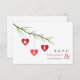 Un carton de réponse de mariage présentant une illustration de trois cœurs rouges suspendus à la branche d'un pin. Personnalisez avec vos initiales sur le cœur. Personnalisez le texte sur le recto et le verso.