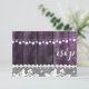 Mariage rustique avec bois, dentelle et coeurs en ficelle - carte de réponse. Conception par Alma Wad. Dessin avant et arrière. Tous les éléments sont imprimés. Cette version est disponible en violet et blanc.
