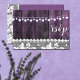 Mariage rustique avec bois, dentelle et cœurs en ficelle - carte de réponse. Conception par Alma Wad. Dessin avant et arrière. Tous les éléments sont imprimés. Cette version est disponible en violet et blanc.