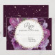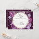 Carte de réponse RSVP de format 3 1/2" x 5" avec enveloppes blanches. Mise en page moderne et horizontale avec une illustration dans un style floral peintre avec des nuances riches allant du lavande clair au rose magenta et jusqu'au violet bordeaux profond. Les tulipes, les roses et les lilas sont peints à la main aux pastels à l'huile avec une qualité douce et rêveuse. Combinés avec une simple couronne de feuilles dessinées à la main dans un ton doré argenté champagne pailleté et un effet d'aquarelle dorée éclaboussée. Copyright, tous droits réservés. Audrey Jeanne Roberts.