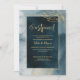 REPORT DE MARIAGE | Lavis aquarelle bleu marine gras avec accents dorés, texte et contours feuillus - Si vous avez envoyé les invitations et que vous avez dû interrompre de manière inattendue la date de votre grand événement, envoyez-les à vos invités. Personnalisez le texte, le style de police, la couleur et la taille. Conception de © WhimsicalArtwork™ Cela fait partie d'une suite de mariage assortie