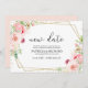 Carton de report de mariage géométrique floral rose