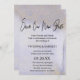 Élégant Enregistrer notre nouvelle carte Date pour faire savoir à vos amis et à votre famille que vous avez reporté votre mariage. 'Un lave à l'eau douce violet et bleu comme accents de parties scintillant dorée. Save Our New Date est écrit sur le dessus dans une police moderne et tendance.