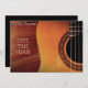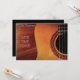 Une carte d'invitation appropriée à un considérant de concert de guitare ou de guitare avec une image élégante et professionnelle d'une photographie d'art de guitare avec le texte personnalisable. Cette invitation de considérant de guitare a pu être employée par des professeurs de guitare pour des concerts d'étudiant ou pour des parents de jeunes musiciens pour inviter leurs amis et familles à une représentation. Ces cartes ont pu également être employées dans une capacité professionnelle de concert avec les détails musicaux de la représentation incluse sur le dos de la carte.