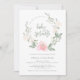 Cette invitation branchée et élégante à l'arrosage de bébé présente une couronne florale d'aquarelle dans les tons printaniers crème, rose et vert.
