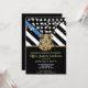 Ce design présente un drapeau de la force de police avec des bandes noires et blanches, ainsi qu'une fine bande bleue. Le badge de police et le texte doré se trouvent au-dessus de tous les détails de la fête pour la retraite de l'agent de la force publique, du shérif, du capitaine ou du chef de la police.